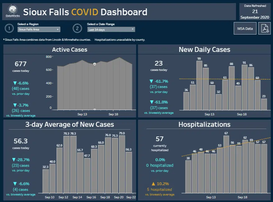 SIOUX FALLS, S.D. (KELO.com) – The City of Sioux Falls reports 677 active coronavirus cases in the metro area.