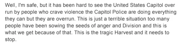 Rep. Dusty Johnson’s statement of events at the U.S. Capitol, 1/6/21.