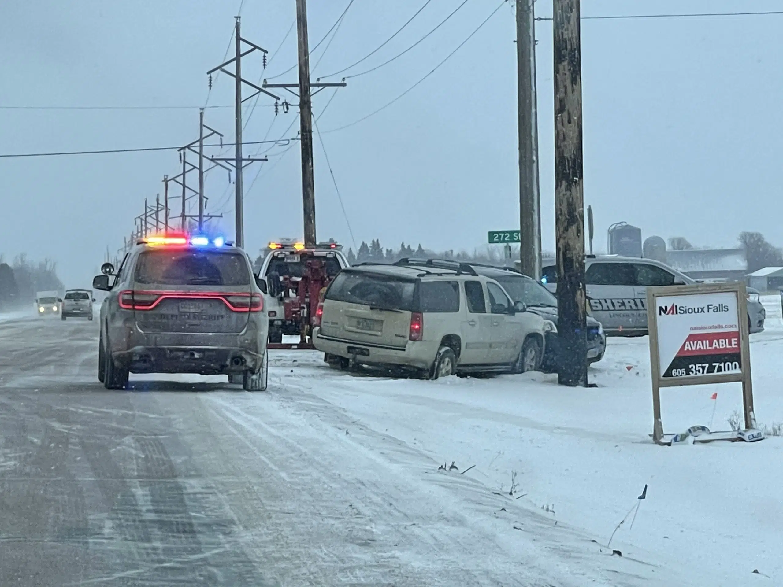 HARRISBURG, S.D. (KELO.com) — A two-vehicle accident on South Cliff Avenue near the Harrisburg Industrial Park (272nd Street) about 8:30 a.m. Wednesday morning is but one example of the deceptive slickness the morning’s fresh coating of snow left on area roads.