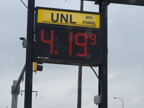 Price of unleaded gasoline in Watertown, S.D., 5/9/22. Photo from KWAT.