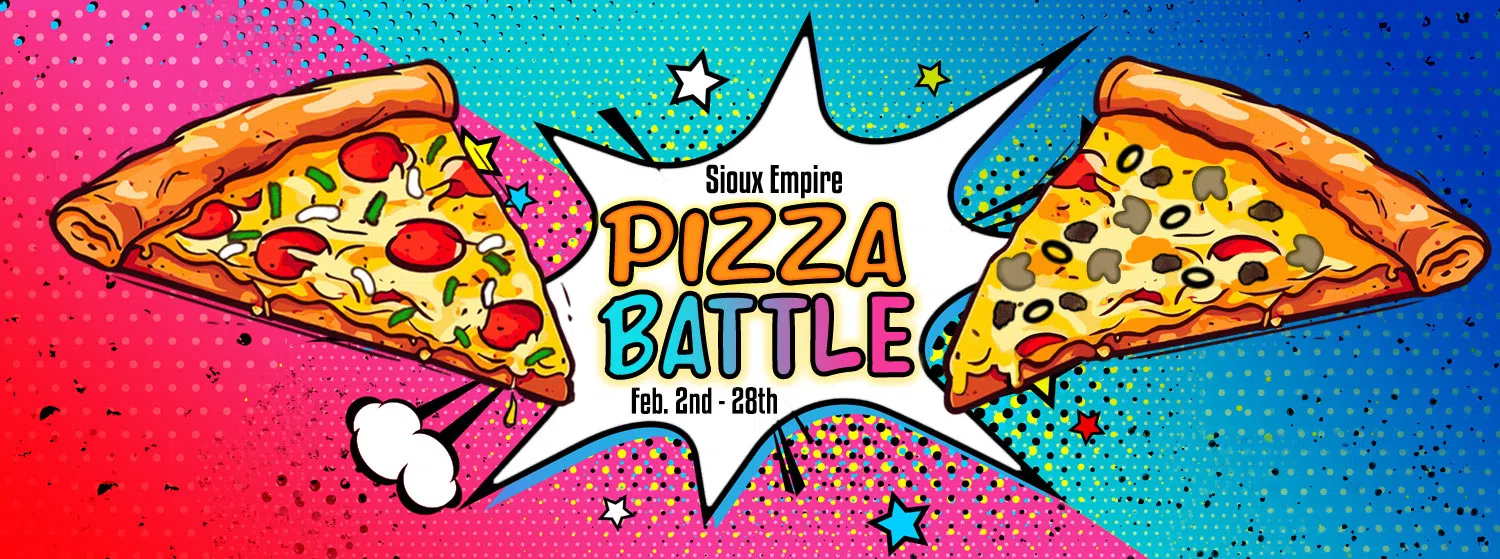 Taste pizzeria creations from 10 different eateries in the Sioux Empire and vote for your favorite pizza! The 2026 battle is on February 2nd – 28th